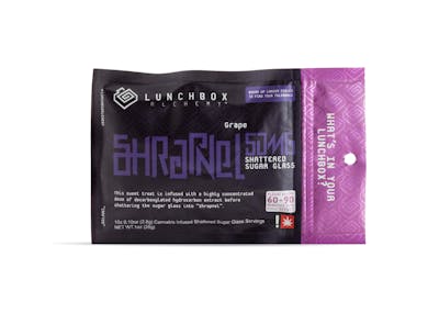 Lunchbox Alchemy's take on a classic hard candy, Shrapnel is great for those who like to enjoy small bits with big flavor. Made in large sheets resembling stained glass, Shrapnel is smashed, shattered and broken into bite-sized pieces and conveniently packaged into a resealable pouch.