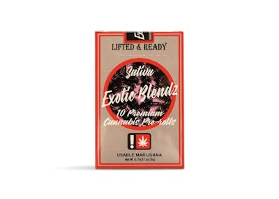 10 half-gram sativa pre-rolls by Exotic Blendz for an uplifting and energetic mental buzz to help increase your focus and creativity.